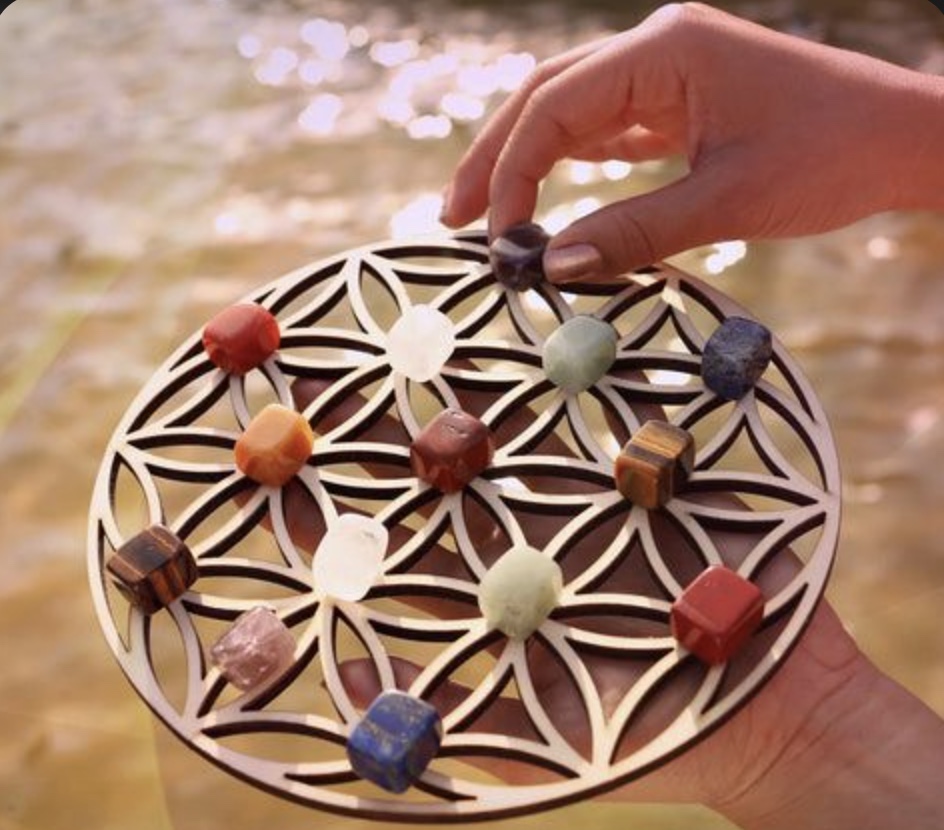 • Les déposer sur une fleur de vie (en bois ou en sélénite): La fleur de vie est une image géométriquement parfaite et souvent considérée comme sacrée, elle est capable de nombreux bienfaits grâce à sa force vibratoire et énergétique.